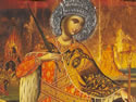 «Santa Catarina de Alexandria»Comemoração: 25 novembro Tendo como sua padroeira esta Megalomártir, o Estado de Santa Catarina foi presenteado pelo Arcebispado Grego Ortodoxo do Monte Sinai - Egito, com uma grande relíquia. Mons. Angelos Kontaxis, archimandrita da Igreja Grega de Florianópolis acompanhando uma comitiva sob a direção do governador do Estado, Dr. Esperidião Amin, esteve pessoalmente no Mosteiro ortodoxo do Monte Sinai de onde, mais tarde, trouxe esta relíquia. O Poder Público do Estado providenciou a edificação de uma capela ecumênica, em estilo bizantino, situada em frente ao Palácio da Justiça, onde as relíquias foram depositadas para veneração dos fiéis. ![]() A História de Santa Catarina
